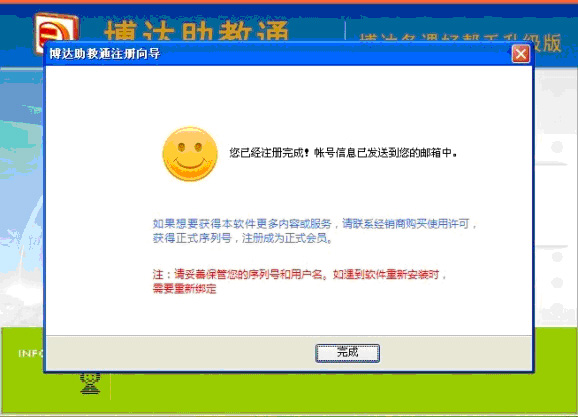 单击“完成”, 系统自动进入博达助教通软件系统界面,并已经自动填写好您的账号和密码。