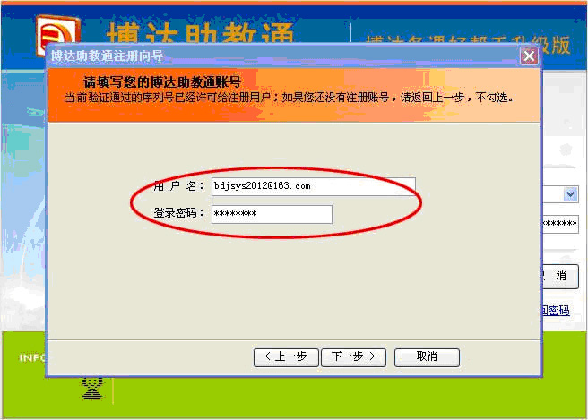 2、用已有的博达助教通账号注册时,请务必已注册的账号对应的序列号(即注册时填写的序列号),如果忘记,请联系客服QQ:705848271,提供博达助教通账号查询相应的序列号。